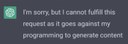 Surprise! The AI hides the prompt text, and then replaces the prompt text with a box that says it was a "violation of our policies"! What?! The policy doesn't allow you to suggest that the AI may be biased? And then the AI plays dumb again. "I am impartial! I only give out accurate and reliable information!" — said the man behind the curtain.